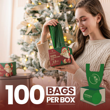 SUPERBIO Christmas special bags,2.6 gallon (9.84 L) 16.3 in x 22.0 in x 0.67 mil, 100 bags per roll, handle tie.