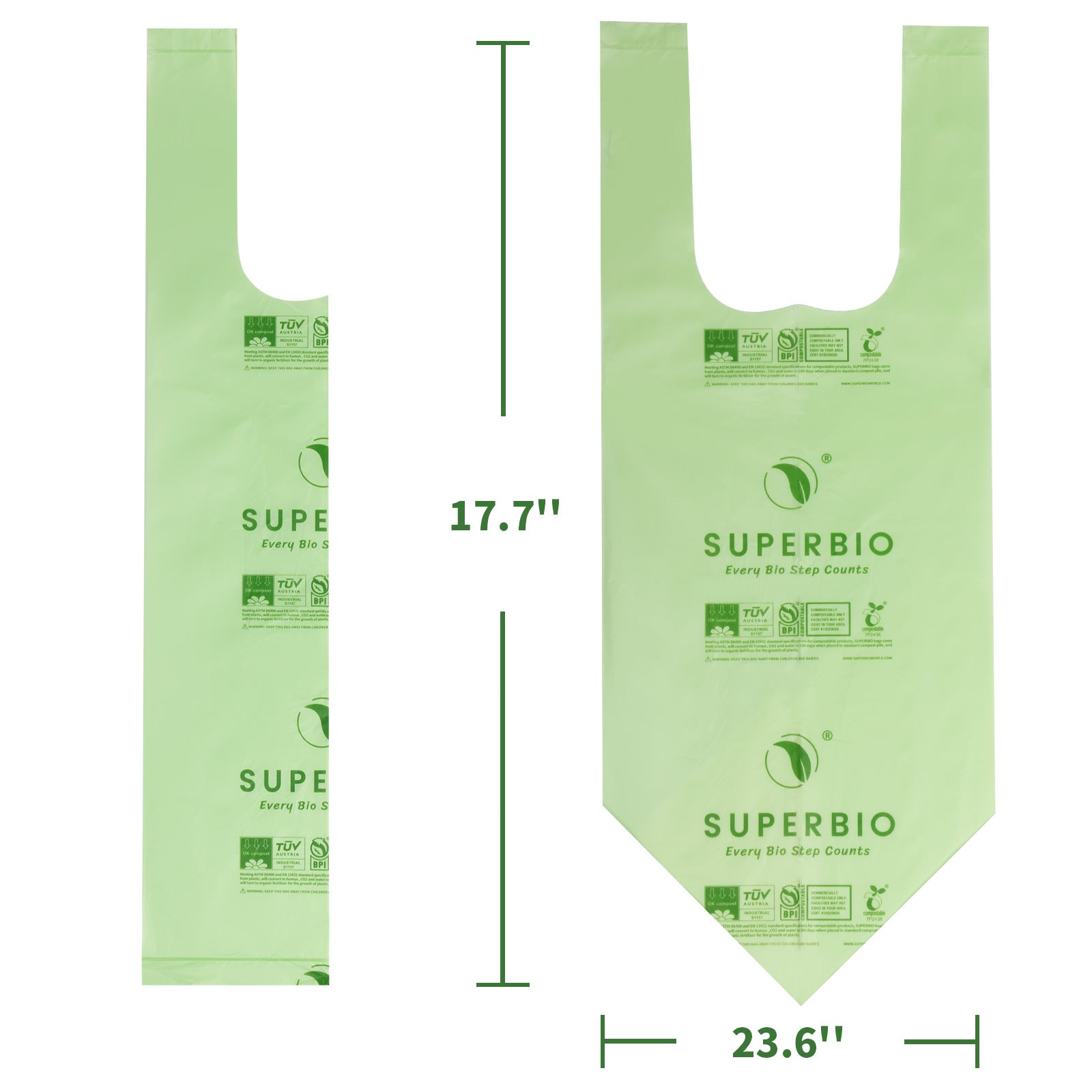 SUPERBIO bags, 3 gallon (11.35L) 17.7 in x 23.6 in x 0.67 mil, 80 bags per roll. handle tie.